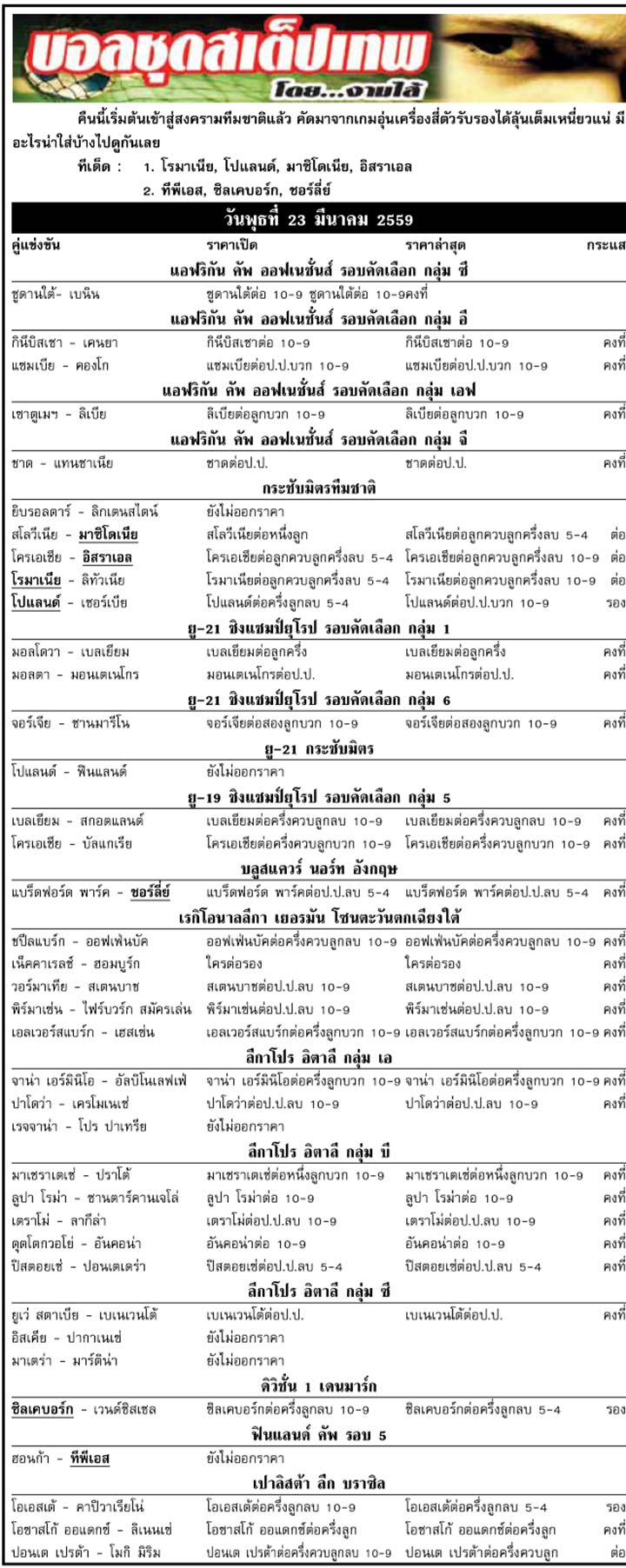 – ฟุตบอลเปิดครบทุกลีก